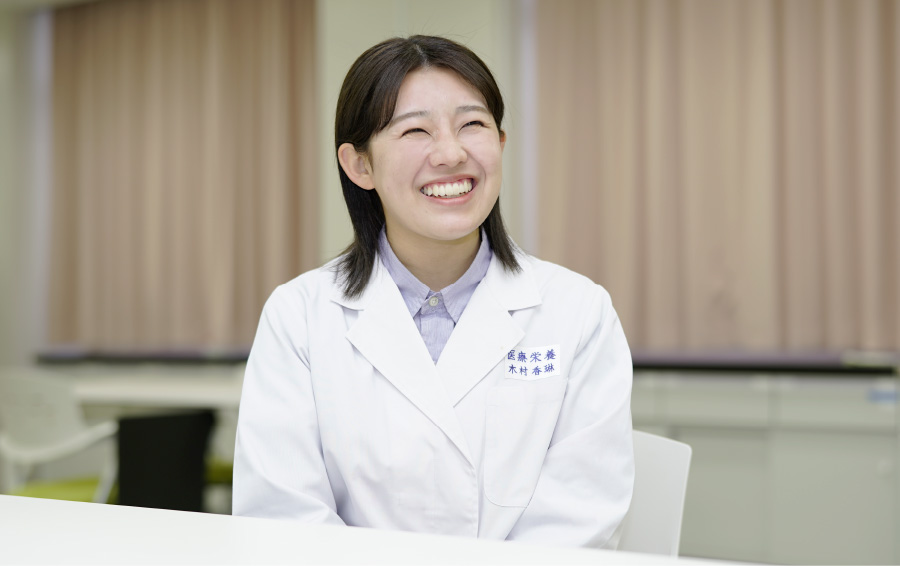 県外にもスポーツに強い管理栄養士を養成している大学があったりして、いろんな大学を調べては悩んでいました。そんな時、高校の先生に「医療系の専門職をめざす学部・学科が揃っているヒロコクなら幅広い学びがあるよ」と勧められて、ここの大学へ進学を決めました。