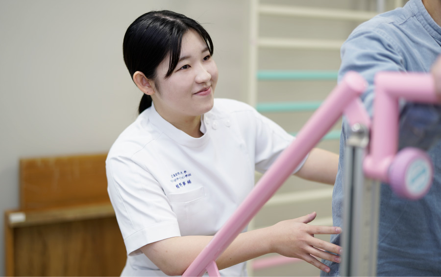 ずっとバスケをしていて、スポーツが好きなので、スポーツ関係の仕事がしたいと思っていました。高校生の時に3、4ヶ月も動けなくなるほどの怪我をして、理学療法士に治療してもらったことがあります。治療を受けている時は何をしているのか分からなかったのですが、終わった後に体が少し変わってる感じがあって「すごいなー!」と思ったことをきっかけに「理学療法士」を意識するようになりました。