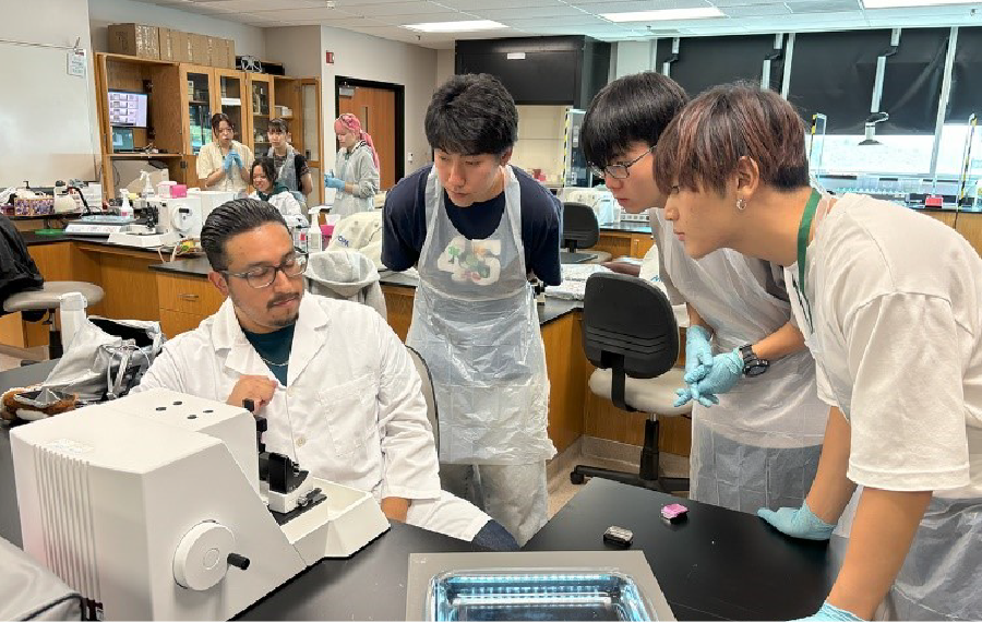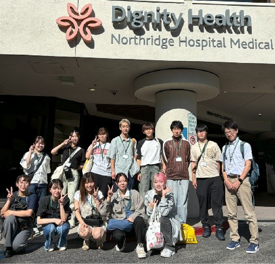 地域の中核病院として機能する総合病院ノースリッジ病院メディカルセンターと、マウントサンアントニオ⼤学を訪問。病院では実際に働いているスタッフから機器の説明や仕事内容を紹介してもらい、大学では現地学生と一緒に体験実習を行いました。現地学生と仲良くなり写真やSNS交換するなど多くの学びと刺激を受けたようです。