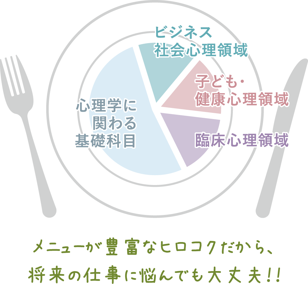 初年次に基礎を固めながら、自分の興味関心に合わせて専門知識を主体的に選択します。「公認心理師を取得してカウンセラーになりたい」、「児童養護施設などの子どもに関わる職に就きたい」など、一人ひとりの「夢」や 「目標」 に合わせてカリキュラムをカスタマイズします。